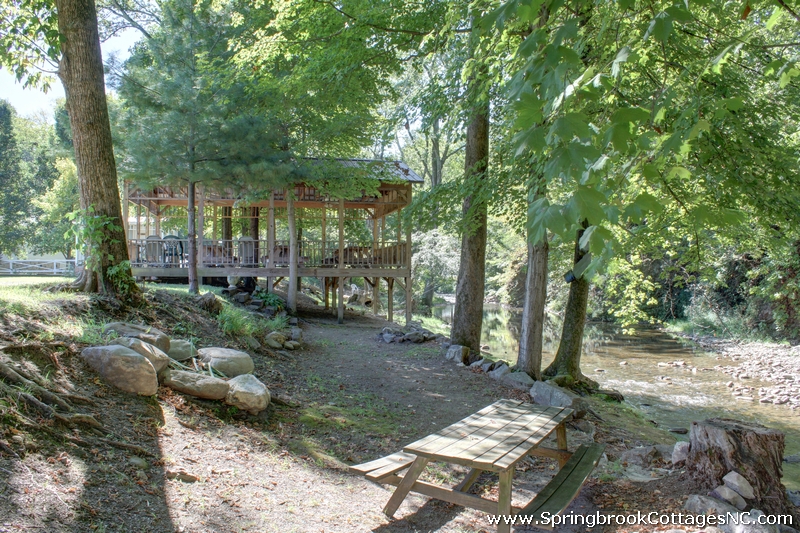- Covered pavilion area by the creek with picnic tables